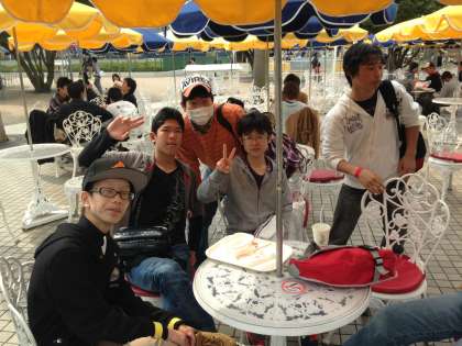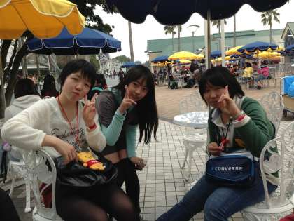 ホワイトサイクロンという,木製の白いジョットコースターに並んでいるようです。