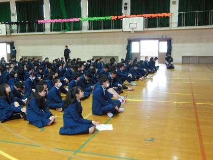 15日の卒業式を終え,公立高校の合格発表が終わり,3年生の学級が閉じられました。今日は平成24年度の終了式です。現1・2年生の学級が閉じられました。1年間共に過ごした教室等を綺麗に掃除をし,油引きをしました。