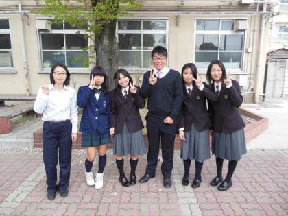 この3月に卒業した生徒が,これまた新しい制服に身をつつみ,顔を見せてくれました。一皮向けたのか,爽やかな笑顔が印象的です。