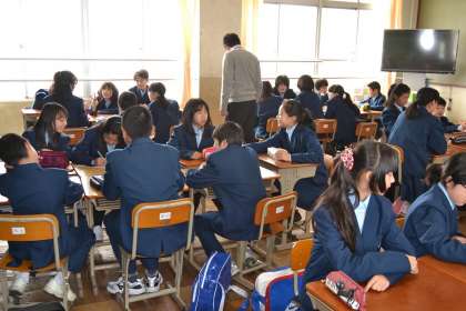 1年生1組の初日を見てきました。担任の先生も張り切っています。生徒たちは,班で係りなどを決めていました。もう慣れたかな。