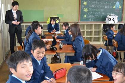 1年生2組です。担任の先生は,一般の会社に勤めていたのを「先生がやりたい!」とこの仕事についたのだそうです。(耳が大きくなっちゃったってマジシャンに似ているかも)
