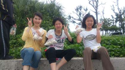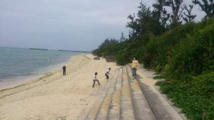 同じく貝殻を拾いに,朝の海岸へ出かけてきた生徒たちです。南国の海を満喫していますか?幸い,今のところ雨は降っていないようです。