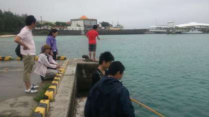 「4組メンバーが、釣りをしています。でも、まだ一匹もつれないらしいです・・・・」