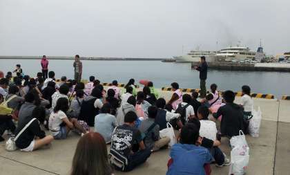 修学旅行もいよいよ最終日を迎えました。7時20分から港で離村式を行い,予定通りフェリーで本部港へ向かいました。全員元気だということです。