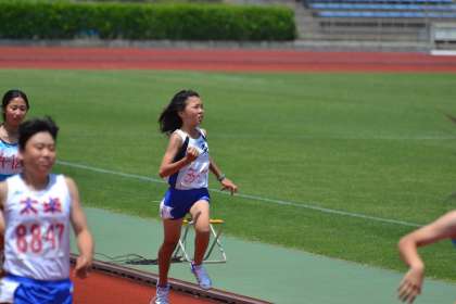 先ずは,100mの予選です。男子2名,女子1名が出場しました。