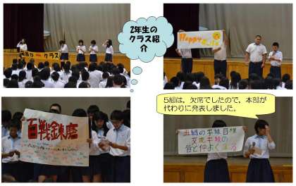 1年生は初めての生徒総会でクラス紹介です。どのような展開になるのか予想もつかず,ましてや最初の発表で,さぞ緊張したのではないかと思います。
