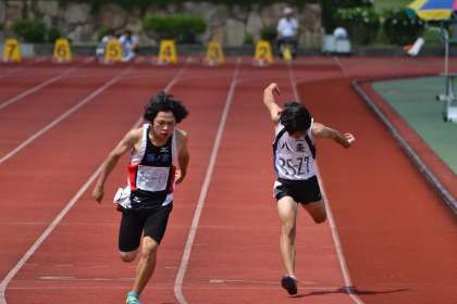 本校からは,3年生,1年生男子100m,男子4種競技,棒高跳び,女子砲丸投げにエントリーしました。選手の中には次の京都府大会を見据えての大会となった者もいますが,やはり本番では純粋に競技に集中していました。中でも,100mは,3年生男子が,予選を見事に突破し,準決勝に出場しました。トラック競技で予選を通過したのは,私,実は始めて見ました。はい。