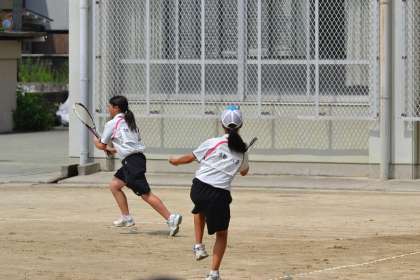 女子テニス部の個人選(予選)が14日(日)に,四条中学校のテニスコートで開催されました。本校からは9ペアがエントリーをし,全市大会出場権をかけ戦っています。昨日のちょっとビックリするぐらいの集中豪雨により,今日の開催が危ぶまれたのですが,関係の先生方や会場の生徒諸君の整備により,スタートすることができました。