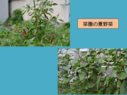 中校舎の南側に面した菜園,人呼んで「八条菜園」には,今夏野菜が育っています。ここのところの雨で,ぐんぐんと伸びるのは野菜だけではなく,雑草も同様です。5組の技術の授業で栽培しているのですが,なかなか重労働です。そんな菜園に,ナスとししとうが実をつけました。ししとうは赤く色付き,赤唐辛子になってきました。
