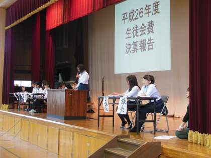6月18日の午後に,平成27年度第1回の生徒総会が開催されました。午後の5.6限に体育館で行われた総会では,それぞれの委員会からの報告や,決算が承認されました。本年度は,美化委員会の名称を環境委員会に変更することや,委員長選挙に関わっての選挙最速の改定も行われ,中身の濃い総会となりました。