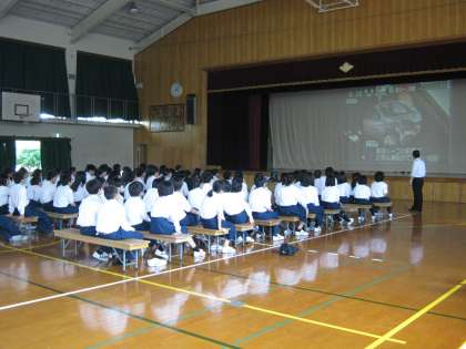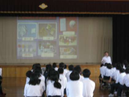 6限、体育館で1年生の非行防止教室を行いました。PTAの地域家庭学級もかねており、保護者の方の参観もありました。教育委員会の生徒指導担当課長様を講師として、講演していただきました。いじめやスマホ、ライン、薬物などの現在起こっている問題や事件についてわかりやすく説明してもらいました。「中学生の年代では、失敗をして成長をしてほしい」という話と「取り返しのつかない失敗(命のなくしてしまうことにつながること)は絶対にしないように」という話がありました。全員真剣に1時間の講演を受け、公演後、講師の先生からお褒めの言葉をもらいました。今後の自分自身の生活にぜひ役立ててほしいと思います。