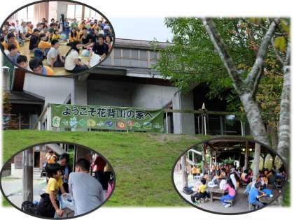 1年5組は,8月24日,25日と離せ山の家へ合同サマーキャンプへ行って来ました。全市から集まった仲間たちと1泊2日の行程です。私は2日目の朝に花背を訪ねました。やはり涼しいかったです。学校とは5度ほど違うとのことです。担任の先生は夜の寒さで少し風邪気味のようでした。着いたときには野外炊飯場での朝食を終えたところでした。その後ゲームをして,風鈴づくりに取り組んでいました。この2日間の経験を活かして,明日からの学校生活,特に学校行事や学習に積極的に取り組んで欲しいと思います。