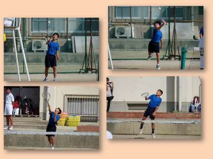 今日は,加茂川中学校で男子テニス部の個人戦(ブロック予選)が開催されています。雨は落ちてはいないのですが,蒸し暑い日となり,選手たちも汗びっしょりでの試合です。今日は1年生大会ということです。本校からは6ペアがエントリーをしました。さすがに初めての公式戦です。みんな緊張でがちがちです。なかなか思うようにラケットが振れない様です。こうやって緊張感の中の試合を経験することで,上手くなっていくのです。時間の都合で4ペアの試合しか応援できずに帰ってきました。頑張れ八中テニス部。