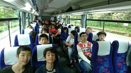 山中湖畔で全員集合です。いよいよバスに乗ってTDLへGO!