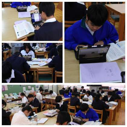 2年生の国語の授業では図書室を活用して授業を行っていました。