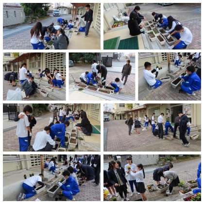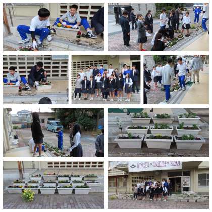 この場所は、地域や保護者の方・高校の先生など、来校された方が一番目にする場所です。これから寒くなっていきますが、昼休みの水やりも含めて大切に育てていきましょう。