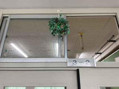 教室のドアの上に、かわいいクリスマスの飾りがかけてあります。先日、文化委員が作ってくれたものです。