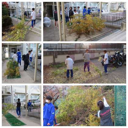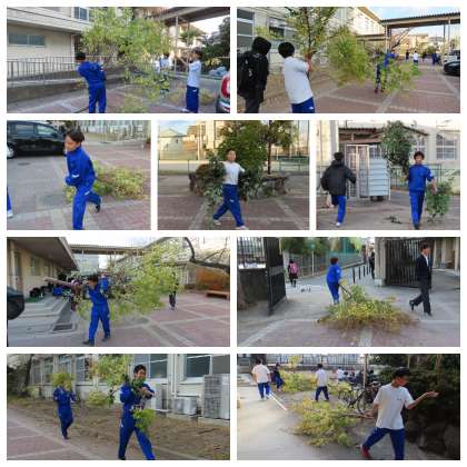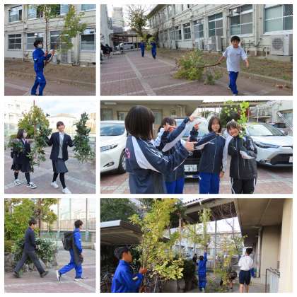 12月17日(水)に実施する「ベンチプロジェクト」に向けて、校内の木を伐採しました。放課後、柔道部と男子ソフトテニス部の生徒が中心となって、伐採した木を運んでくれました。大きな木もありましたが、みんなで協力してグラウンドまで運んでくれました。本当にありがとうございました。