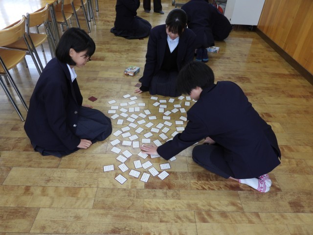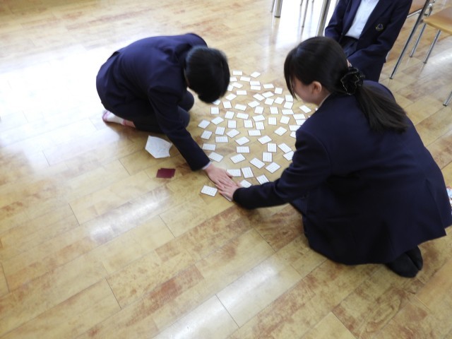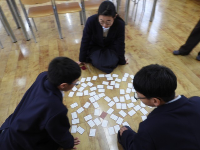 1月22日(木)に1.2年生の百人一首大会が行われます。今週は昼休みの時間を活用して文化委員会が中心となり自主練習に励んでいる人もいます。