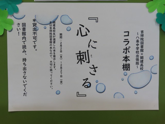 2月2日(月)~27日(金)の一か月間、図書室では「コラボ本棚」を設置しています。