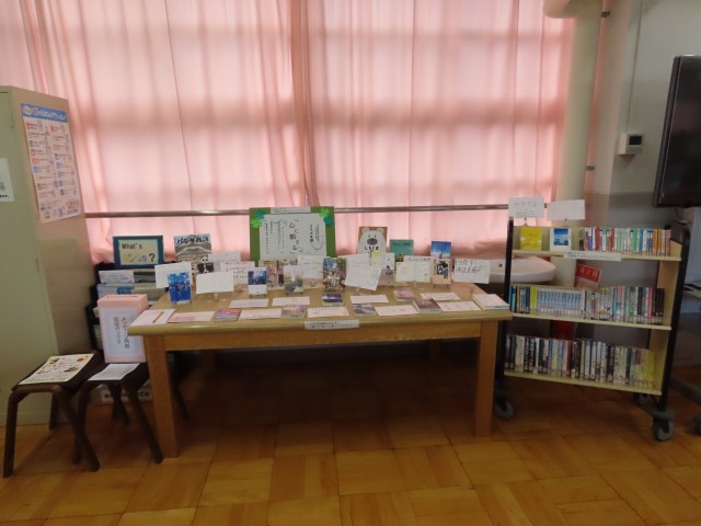 開建高校の図書委員が中学生に進める本を、吉祥院図書館の方が中学校に持ってこられて、図書室に展示しています。