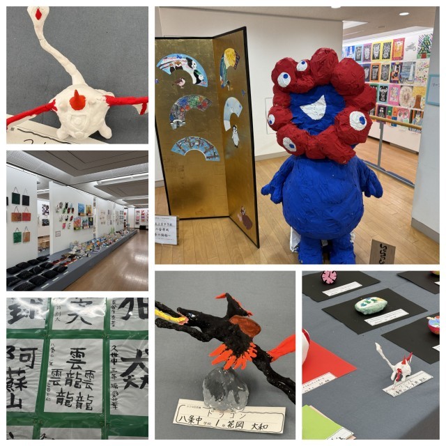 八条中生徒の作品も掲示しています。また、京都市全域の育成学級の生徒が作成した作品も多数展示されています。