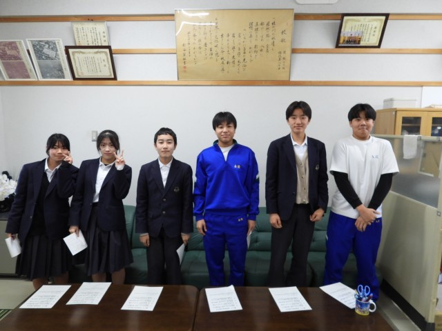 今日から2年3組の人たちの訪問が始まりました。明後日からのテストに向けて勉強を頑張ったり、部活動や運動を頑張っている話を聞かせえもらいました。