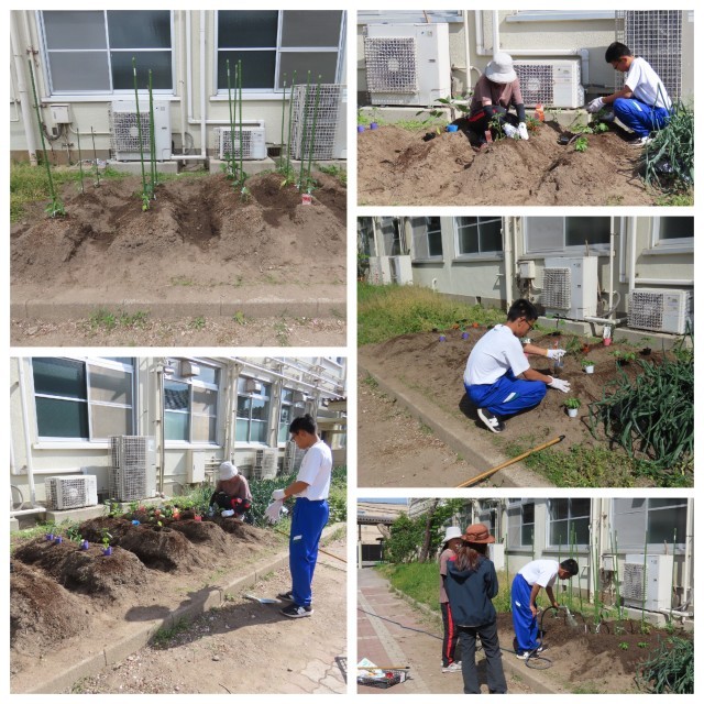 育成学級では、ナスやトマト、キュウリ、バジルなどの栽培を始めました。これからしっかりと水やりをして、大切に育ててくださいね。