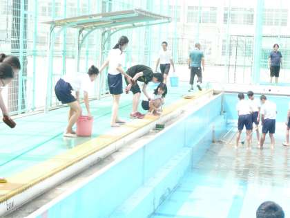 1時間半ほどかかりましたが,プールは見る見るうちにきれいになっていきました。きれいになるって,気持ちいいですね。