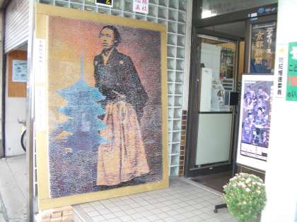今朝の京都新聞の市民版に2年生79人が文化祭に向けて制作した、点描画「龍馬&東寺」の記事が掲載されました。これは8色に塗り分けたつまようじ12万本を刺して創作し、近くの学校評議員さんでもある京都新聞洛南販売所前に飾らせてもらったものです。ここは東寺への通り道にあたり、当日の「弘法市」に向かう人々が足を止めて見ておられました。有り難うございました。