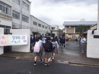 また,今日は「空き缶,エコキャップ回収運動」の日でした。エコキャップを集めて病気で苦しんでいる遠い国の子どもたちの救いになればとの思いで取り組んでいます。“Think globally, act locally”必ず想いは届く。そして,その想いは必ず将来自分にも帰ってきます。