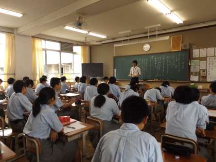 1限は教科授業,2限は道徳を行いました。写真は,3年数学・2年道徳・1年道徳の授業の様子です。また3限には体育館にて,非行防止教室を実施しました。非行防止教室には保護者の方にもご参加いただきました。