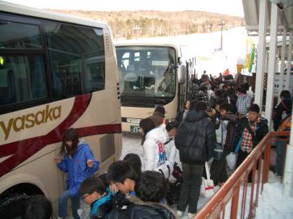 朝6時30分に学校の多目的室に集合し、結団式をしました。校長先生の挨拶の後、添乗員さん、写真屋さんの紹介をしました。6時50分にバスへ移動しました。予定通り7時にバスが出発しました。3回のトイレ休憩後12時半ごろに白樺高原ホテルに到着しました。