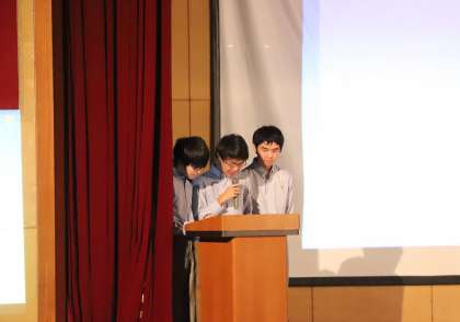 文化祭のプログラムの説明は,毎年コンピュータ部がスクリーンを使って行ってくれます。今年も工夫を凝らしてくれました。