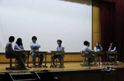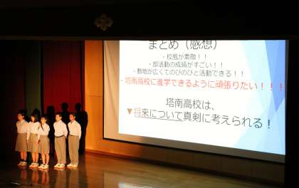 2年生は,6月27日に実施した高校訪問についてまとめたものを,パワーポイントを使って発表しました。自分の進路について具体的に考える切っ掛けになった取組です。