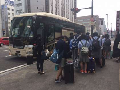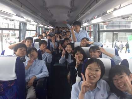 静岡は,京都より気温が低く風も強いようです。バスに乗車し,昼食場所・ラフティング会場に向け出発です。