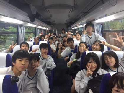 みんな元気そうです!きっとバス内はレクレーション等で盛り上がるんでしょうね・・