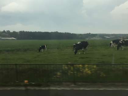 バスはホテルに向かい,朝霧高原付近を通過中です。朝霧高原は静岡県富士宮市北部・富士山西麓の標高700〜1,000 mに広がる高原で,富士箱根伊豆国立公園に指定されています。
