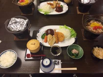 本日の夕食です。今日はけがをしたり,体調が悪くなったりする生徒はおらず,みんな食欲旺盛で,おいしく夕食を済ませたようです。