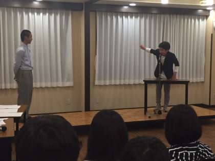 芸達者のそろい踏み。ものまね・コントと続いたようです。学年全員で大いに盛り上がったレクリエーションでした。
