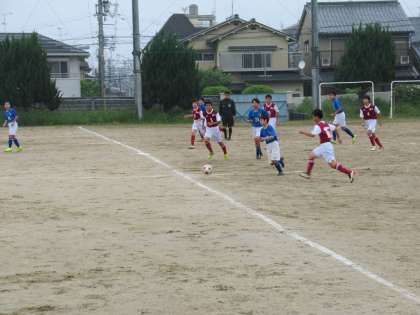 5月1日,サッカー部春季大会2回戦は,開始前から雨の降りしきる中でのゲームとなりました。それでも,フィールド,ベンチとも元気に声を掛け合い臨んでいきます。