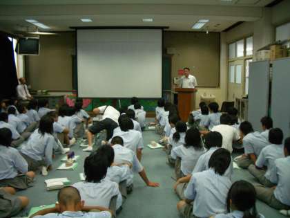 3年生で15日(水)の4時間目に京都府南警察署の生活安全課少年係の水嶋警部補様に薬物の乱用防止についてビデオ視聴の後、お話をしていただきました。