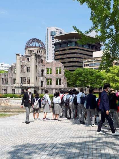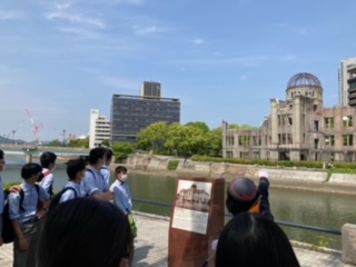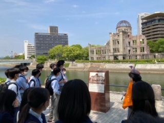 原爆資料館が見えてきました。ガイドさんから戦争のこと原子爆弾のことを学びます。