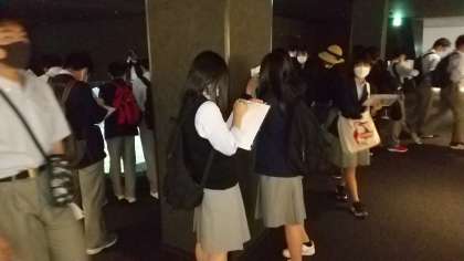 真剣なまなざしで学習しています。この国がかつて体験した戦争を自分の心で体験してください。館内で活動する本校生徒の写真をこのホームページに掲載することについては、「広島平和記念資料館学芸課」から許可をいただきました。ありがとうございました。