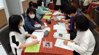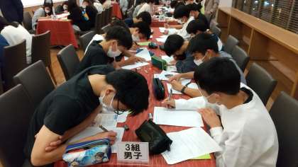 今日の広島平和記念資料館で学んだことを、それぞれのテーマでまとめて発表します。みんな真剣です。
