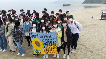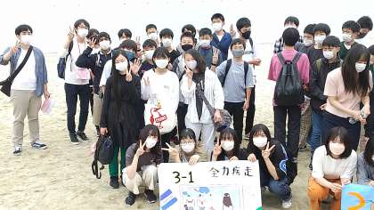 学級旗と一緒に集合写真です