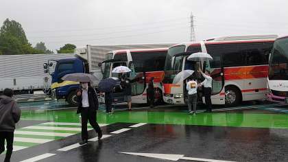 鞆の浦を後に、バスで移動。吉備SAに到着しました。姫路セントラルパークまであと少しです。