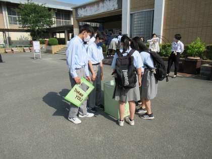 本校では,これまでから「エコキャップ運動」と銘打ち,定期的にペットボトルキャップを集め,それをポリオワクチンに換える活動を全校で行っています。世界には様々な問題があって,自分たちが考えてもどうしようもない大きな問題もたくさんあります。でも,自分たちのできることから取り組むことが,世界の大きな問題を正しくとらえることにつながっていくのです。いい取組です。次回の回収日は7月5日(火)とのことです。みんなで頑張りましょう。