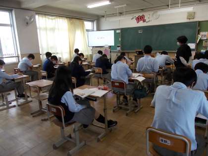 今日の3年生の道徳は,言葉にそえて「言葉おしみ」です。作者が経験した,投げかける言葉と受け止める言葉のやりとりの場面を通して,社会生活の中で礼儀の意義や役割について考え,時と場に応じた適切な言動がとれるようになりたいですね。「人を思いやる行動と共に,ちょっとした言葉がけは,なぜ大切なのですか」という最後の発問に,みんな一生懸命考えていました。