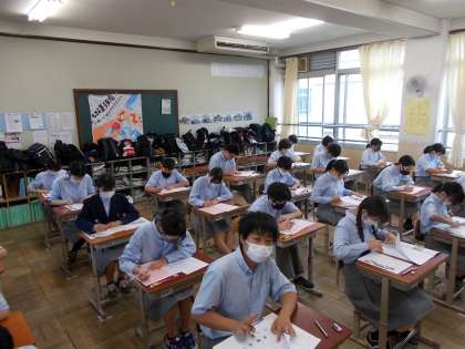 第1回テストが始まりました。これまでの学習の成果をしっかり発揮してください。この3日間,悔いを残さないよう全力で取り組みましょう。ガンバレ九条中生!